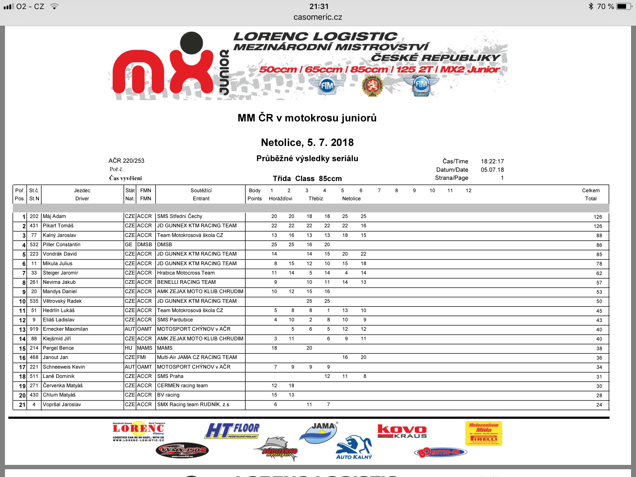 Za organizační tým Vladimír Hudousek 29.1.2018