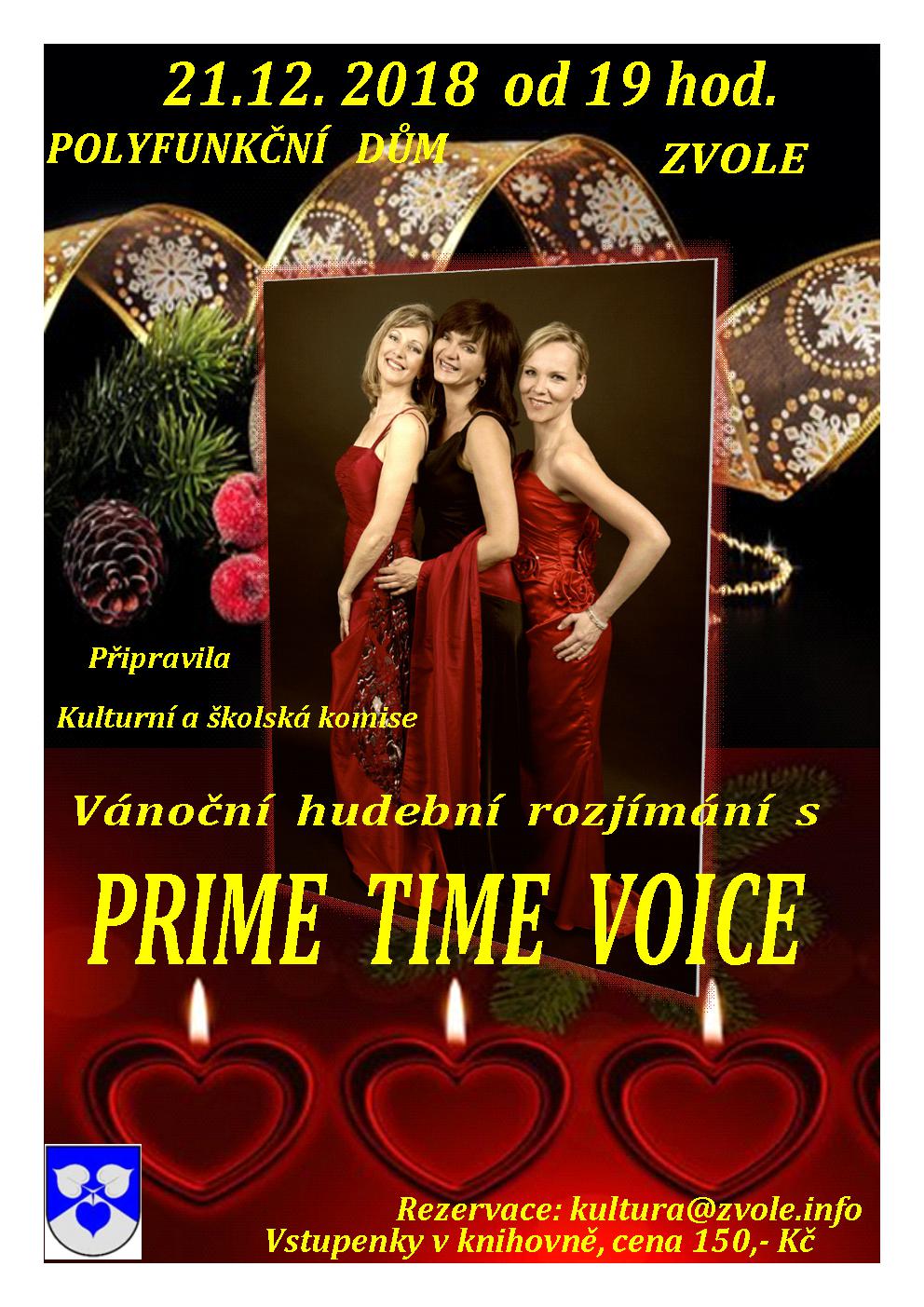 Přijďte si poslechnout Vánoční rozjímání s tria PRIME TIME VOICE, které nám zahraje a zazpívá v pátek 21. prosince 2018 od 19:00 hodin v Polydomě. Pozvánka Zde. Ochutnávka Zde.